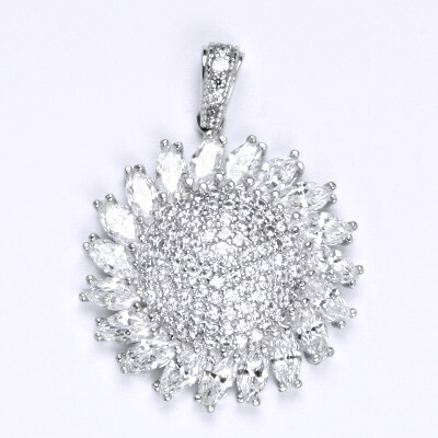 Přívěsek vyrobený z bílého zlata 14 karátů 585/1000, bohatě zdobený syntetickým zirkonem. Celková velikost přívěsku včetně ouška je 34 mm. Při více kusech skladem je váha orientační.