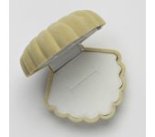 Béžová sametová krabička ve tvaru mušle. Krabička je vhodná na prsten. Rozměry krabičky jsou 55x62x33 mm. Krabička je vhodná na prstýnek nebo náušnice.
