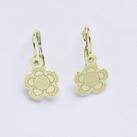 Dětské náušnice žluté zlato 14 karátů, kytičky. Celková velikost náušnice je 16 mm. Orientační váha 1,03 g.