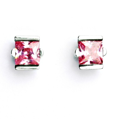 Náušnice z bílého zlata jsou zdobny růžovým zirkonem o rozměru 6x6 mm. Materiál je zlato 585/1000. Orientační váha náušnic je 3,18 g. Náušnice mají zapínání na šroubek a jsou rhodiované.