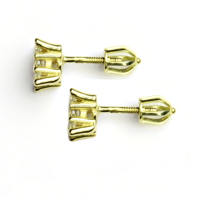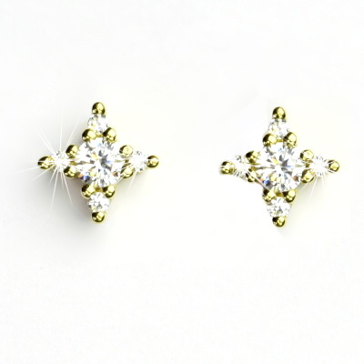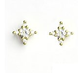 Náušnice ze žlutého zlata jsou zdobeny čirými zirkony, největší má průměr 4 mm. Materiál náušnic je zlato 585/1000. Rozměr zdobné části náušnice je 10x10 mm. Náušnice mají zapínání na šroubek. Orientační váha náušnic je 2,60 g.