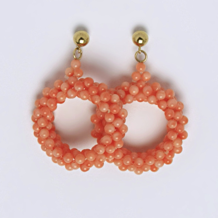 Náušnice ze žlutého zlata s přírodním korálem.Váha drahého kovu je do 1 g. Přírodní korál je růžový nedobarvovaný. Zapínání náušnic je na puzetu . Délka náušnice je 45 mm. Materiál je zlato 585/1000.