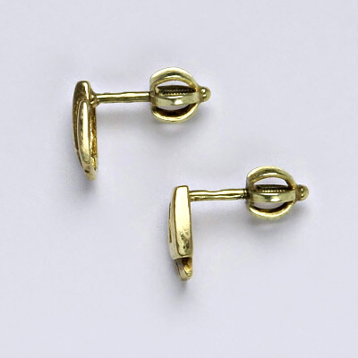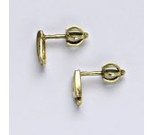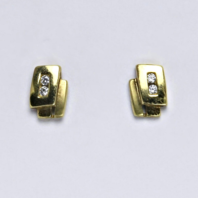 Zlaté náušnice, náušničky, jsou vyrobené ze žlutého zlata, zdobené syntetickými zirkony. Zapínání na náušnicích je šroubek. Materiál je zlato 14 karátů 585/1000. Celková velikost náušnice je 8 x 6 mm.