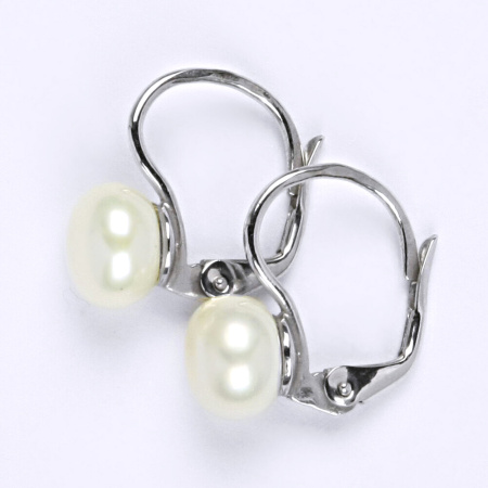 Zlaté náušnice jsou zdobeny bílou přírodní říční perlou. Průměr perly je cca 8 mm. Materiál náušnic je zlato ryzosti 585/1000. Orientační váha náušnic je cca 2,49 g. Náušnice jsou z bílého zlata a mají zapínání na klasický patent.