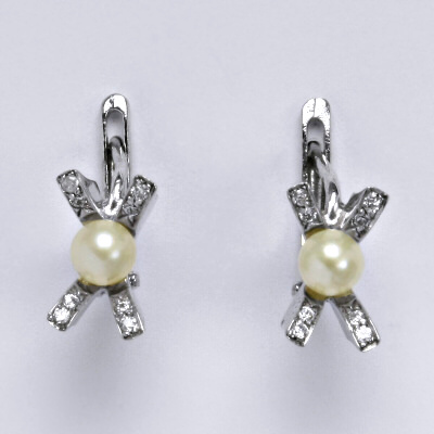 Zlaté náušnice z bílého zlata s přírodní bílou perlou.Výška náušnic je 16 mm. Zapínání náušnice je na patent. Váha náušnic je 5,17 g. Materiál je 14 karátové zlato 585/1000.