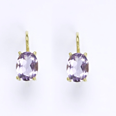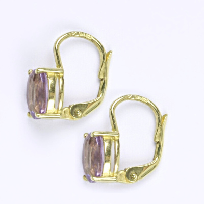 Zlaté náušnice ze žlutého zlata 14 karátů s přírodním ametystem. Velikost kamene je 8 x 6 mm. Náušnice mají zapínání na klasický patent. Celková výška náušnic je 15 mm. Orientační váha náušnic je 2,58 g.