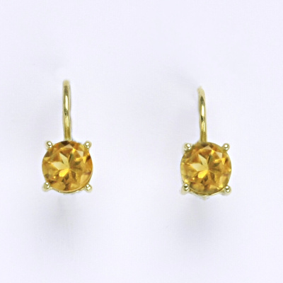 Zlaté náušnice ze žlutého zlata 14 karátů s přírodním ametystem. Velikost kamene je 6 mm. Náušnice mají zapínání na klasický patent. Celková výška náušnic je 15 mm. Orientační váha náušnic je 2,01 g.