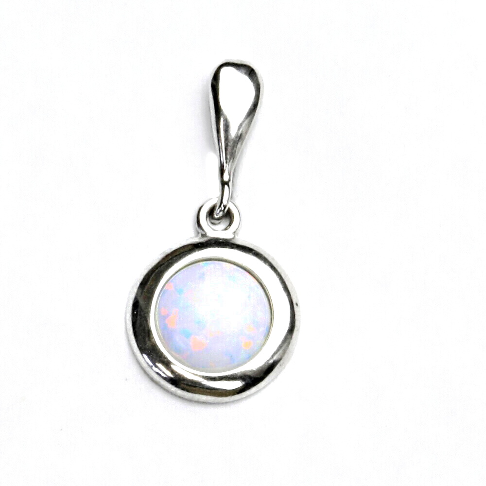 Přívěsek z bílého zlata je zdoben bílým syntetickým opálem o průměru 8 mm. Materiál je zlato 585/1000. Orientační váha přívěsku je 1,37 g. Rozměr přívěsku je 20 mm včetně očka na výšku a 11 mm na šířku.