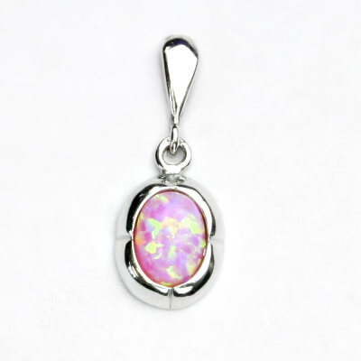 Přívěsek z bílého zlata je zdoben růžovým syntetickým opálem o rozměru 8x 6mm. Materiál je zlato 585/1000. Orientační váha je 1,8 g. Rozměr přívěsku je 22 mm včetně úchytu na výšku a 9 mm na šířku.