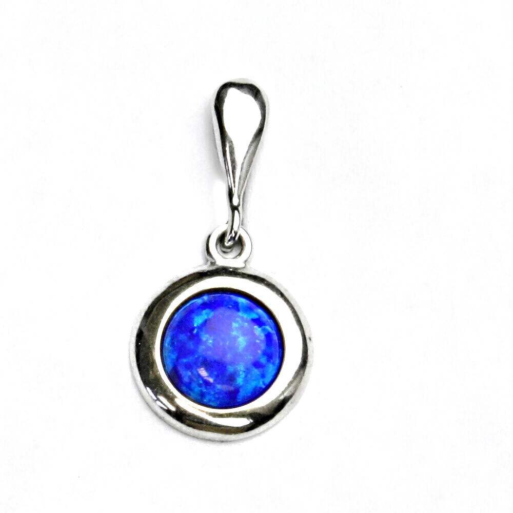 Přívěsek z bílého zlata je zdoben tmavě modrým syntetickým opálem o průměru 8 mm. Materiál je zlato 585/1000. Orientační váha přívěsku je 1,37 g. Rozměr přívěsku je 20 mm včetně očka na výšku a 11 mm na šířku.