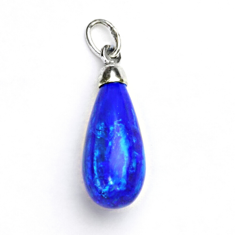 Přívěsek z bílého zlata je zdoben syntetickým tmavě modrým opálem o rozměru 18x14 mm. Materiál je zlato 585/1000. Orientační váha přívěsku je 1,43 g. Rozměr přívěsku je 26 mm včetně očka na výšku.