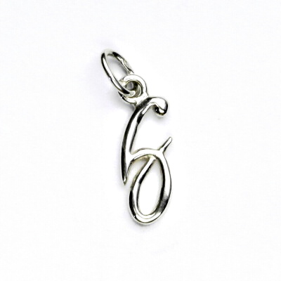 Přívěsek z bílého zlata - písmenko "G". Materiál je zlato 585/1000. Orientační váha přívěsku je 0,70 g. Rozměr přívěsku je 20 mm včetně očka na výšku a 5 mm na šířku.