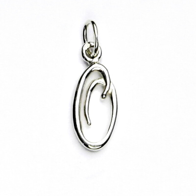 Přívěsek z bílého zlata - písmenko "O". Materiál je zlato 585/1000. Orientační váha přívěsku je 0,97 g. Rozměr přívěsku je 21 mm včetně očka na výšku a 7 mm na šířku.