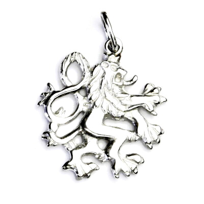 Přívěsek z bílého zlata Český lev.Orientační váha přívěsku je 3,23 g. Materiál je 14 karátové žluté zlato 585/1000. Rozměr přívěsku je 26 mm včetně očka na výšku a 18 mm na šířku.