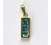 Přívěsek je vyrobený ze žlutého zlata o ryzosti 14 karátů 585/1000. Orientační váha přívěsku je 1,53 g. Celková výška přívěsku včetně očka je 23 mm.