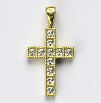 Přívěsek je vyrobený ze žlutého zlata o ryzosti 14 karátů 585/1000. Přívěšek je zdobený syntetickými zirkony. Orientační váha přívěsku je 1,73 g. Celková výška přívěsku včetně očka je 25 mm.