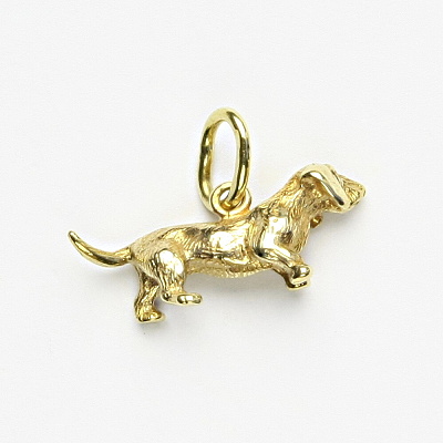 Přívěsek s figurkou jezevčíka ze žlutého zlata 585/1000.