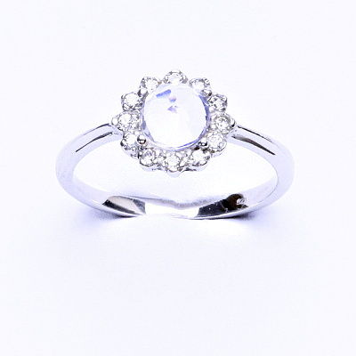 Luxusní prsten z bílého zlata ryzosti 585/1000 zdobený přírodním kamenem křišťál a čirými zirkony.