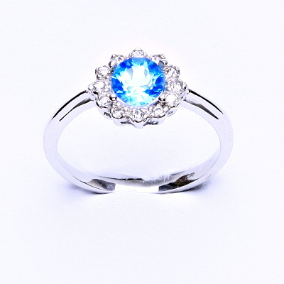 Luxusní prsten z bílého zlata ryzosti 585/1000 zdobený přírodním kamenem topaz swiss a čirými zirkony.
