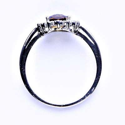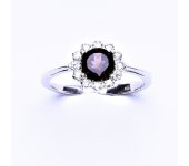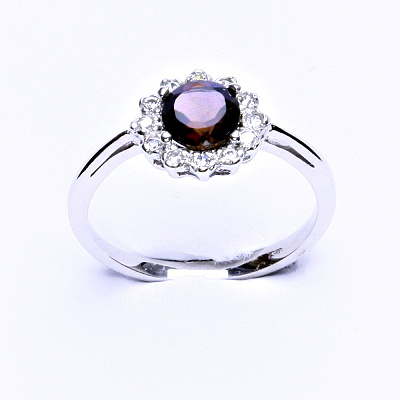 Luxusní prsten z bílého zlata ryzosti 585/1000 zdobený přírodním kamenem záhněda a čirými zirkony.