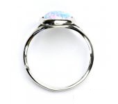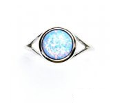Prstýnek z bílého zlata je zdoben světle modrým syntetickým opálem o průměru 8 mm. Materiál je zlato 585/1000. Orientační váha prstenu ve velikosti 54 je 2,31 g.