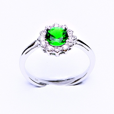 Prsten z bílého zlata ryzosti 585/1000, zirkon smaragd 5,5 mm.