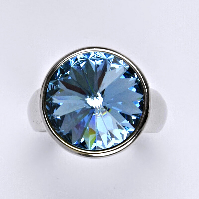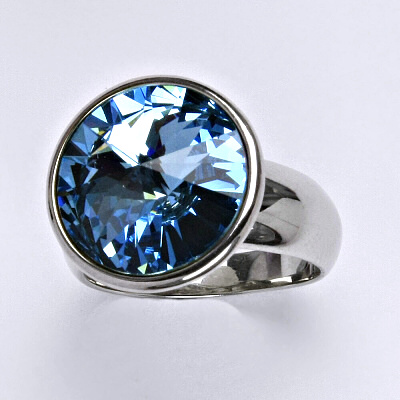 Zlatý prsten se Swarovski krystalem. Velikost Swarovski krystalu je 14 mm. Prstýnek je z bílého čtrnácti karátového zlata 585/1000. Orientační váha prstenu je 7,35 g.