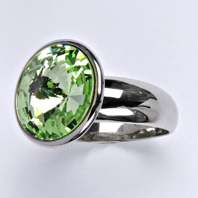 Zlatý prsten se Swarovski krystalem. Velikost Swarovski krystalu je 14 mm. Prstýnek je z bílého čtrnácti karátového zlata 585/1000. Orientační váha prstenu je 7,35 g.