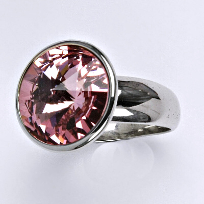 Zlatý prsten se Swarovski krystalem. Velikost Swarovski krystalu je 14 mm. Prstýnek je z bílého čtrnácti karátového zlata 585/1000. Orientační váha prstenu je 7,35 g.
