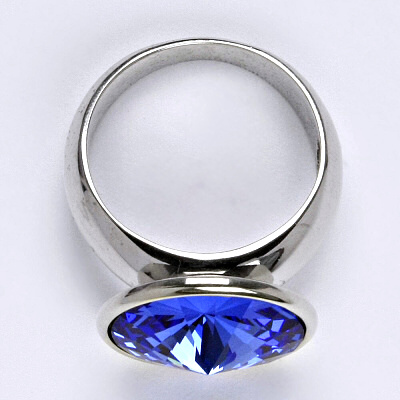 Zlatý prsten se Swarovski krystalem. Velikost Swarovski krystalu je 14 mm. Prstýnek je z bílého čtrnácti karátového zlata 585/1000. Orientační váha prstenu je 7,35 g.