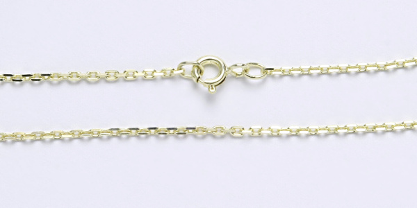 Zlatý řetízek ze žlutého zlata. Délka řetízku je 45 cm. Materiál je zlato 14 karátů 585/1000. Orientační váha je 3,87 g.